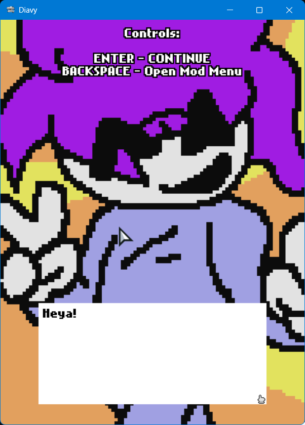 A game intended for dialogue heavy games. Featuring mod support and allowing for scipting through haxe files (.hxc files specifically).
